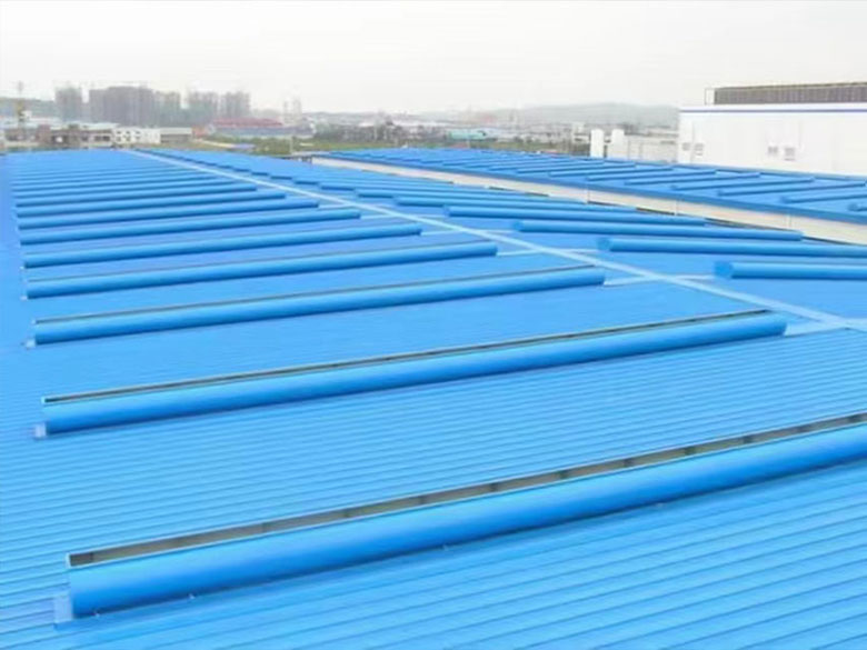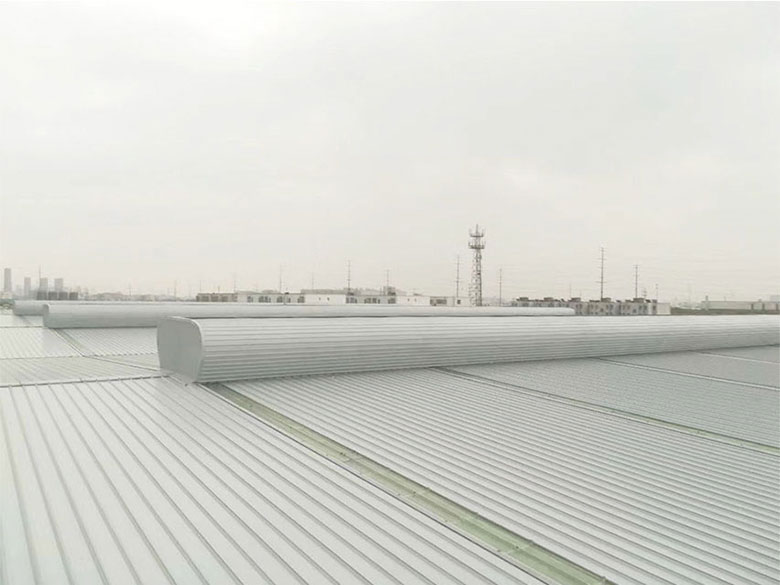 特殊造型的"屋顶小房子",暴雨天雨水自动滑走不灌入,8级大风照样正常工作。就像给厂房戴了顶透气雨帽。